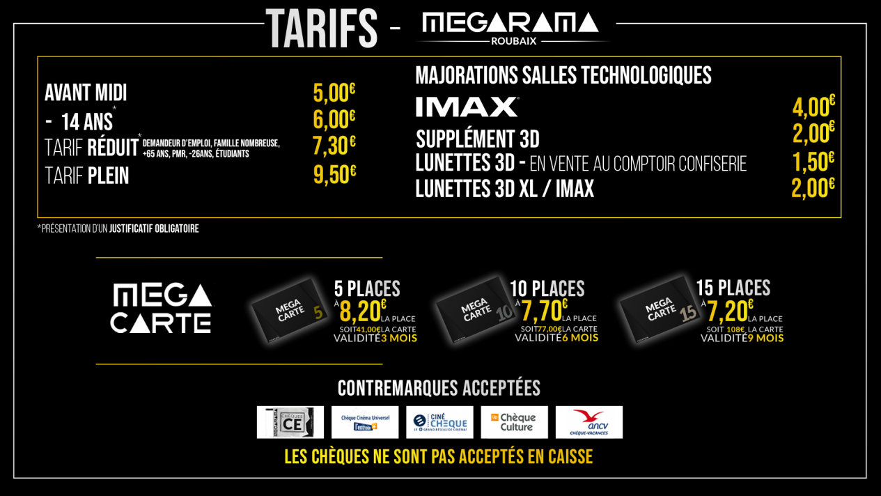 tarifs de votre Megarama Roubaix