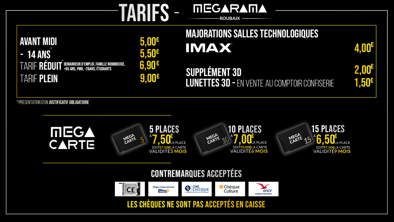 tarifs de votre Megarama Roubaix